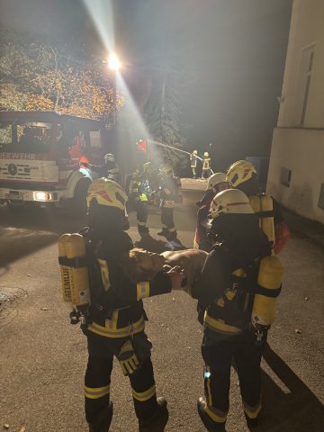 Mit 4 Atemschutztrupps konnte die Personensuche durchgeführt und gemeinsam ein umfassender Außenangriff aufgebaut werden.